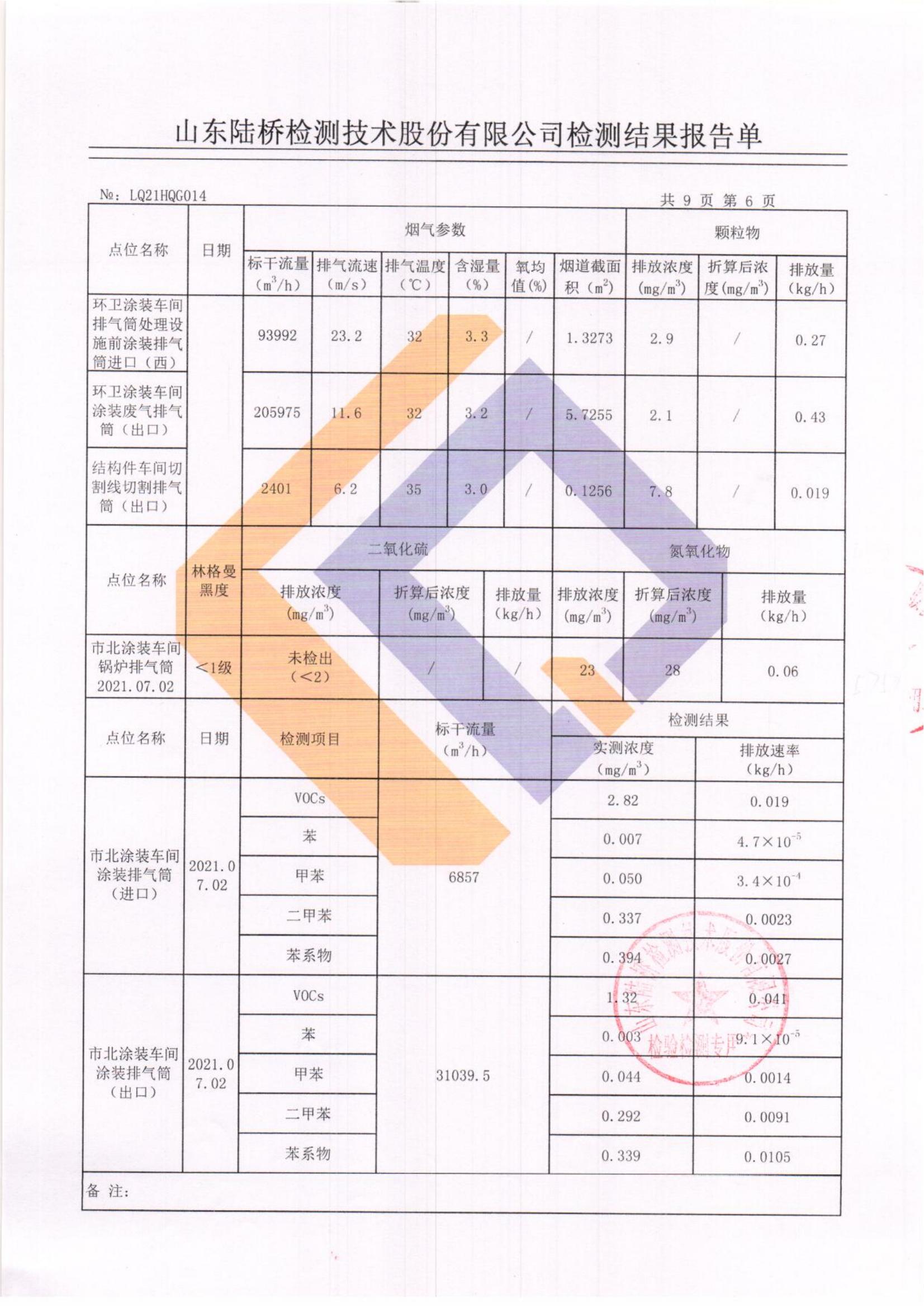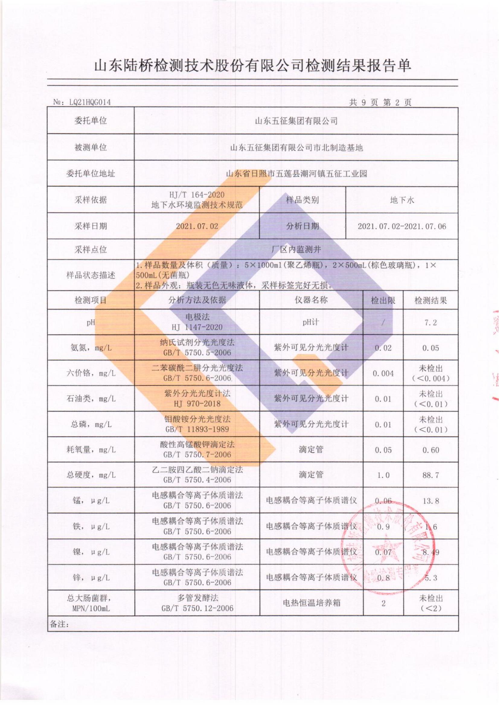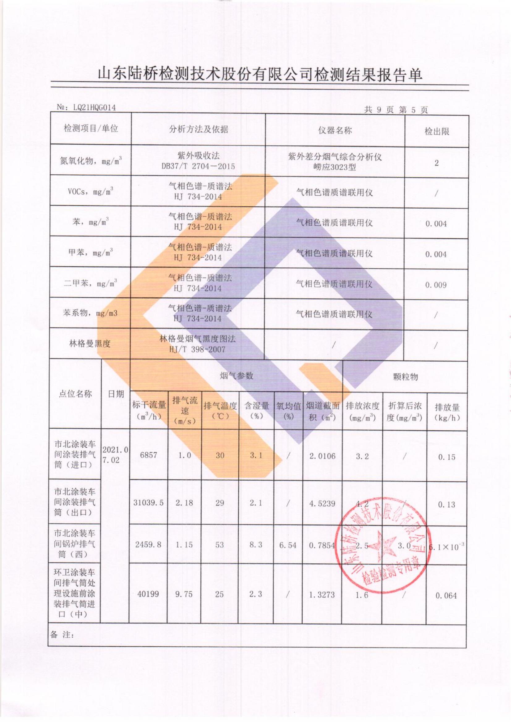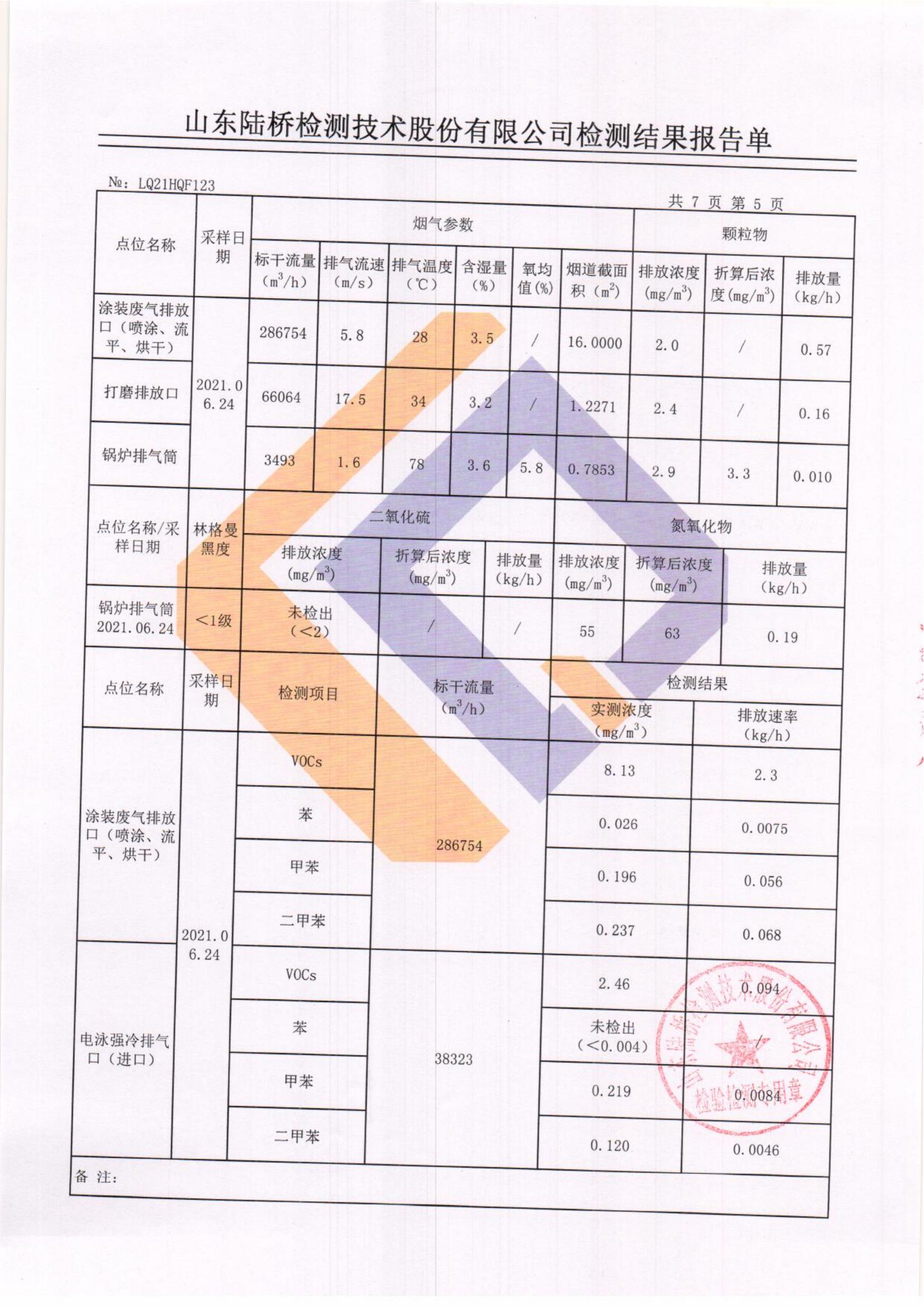 山东五征集团有限公司2021年第二季度环保例行监测数据公示