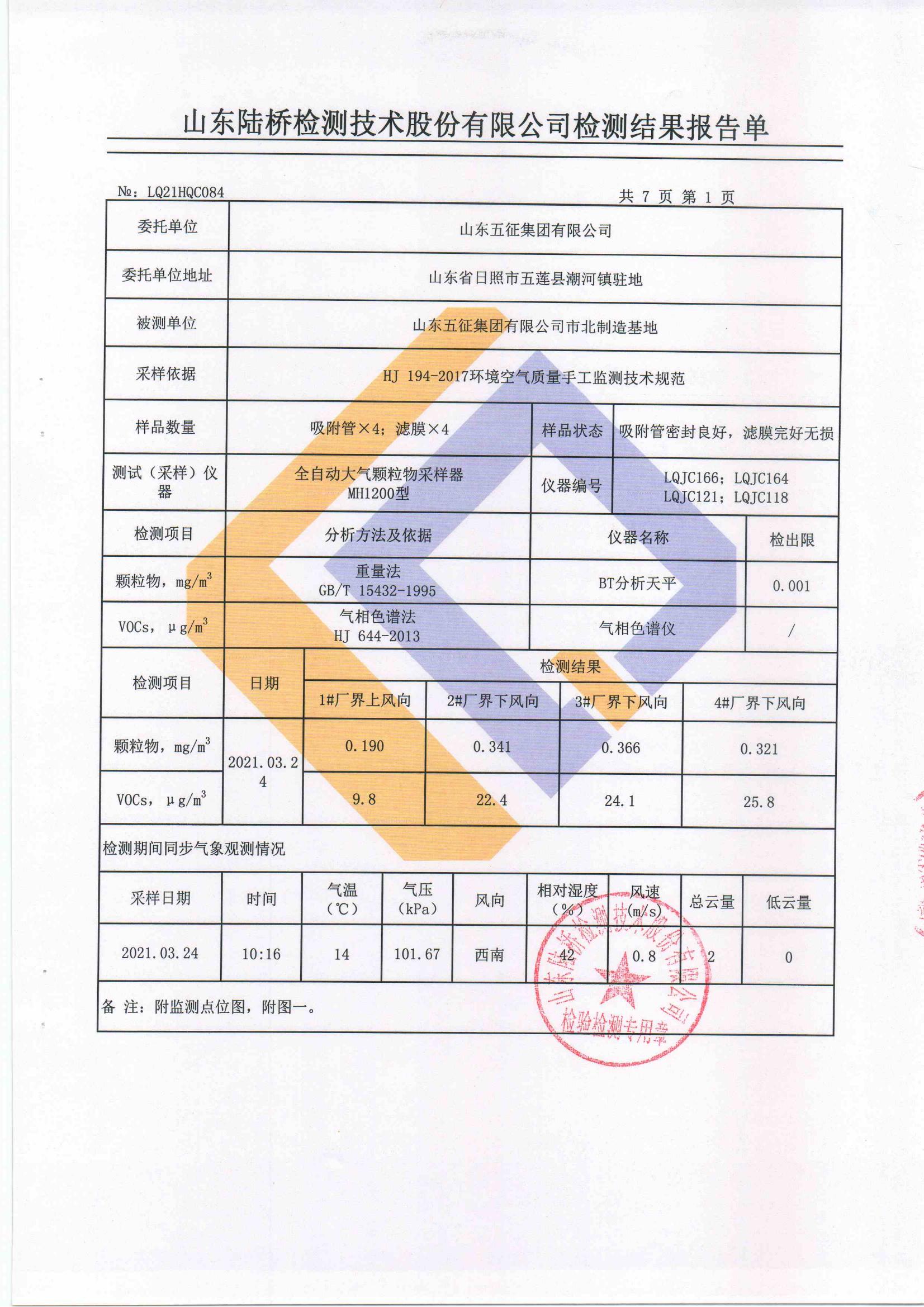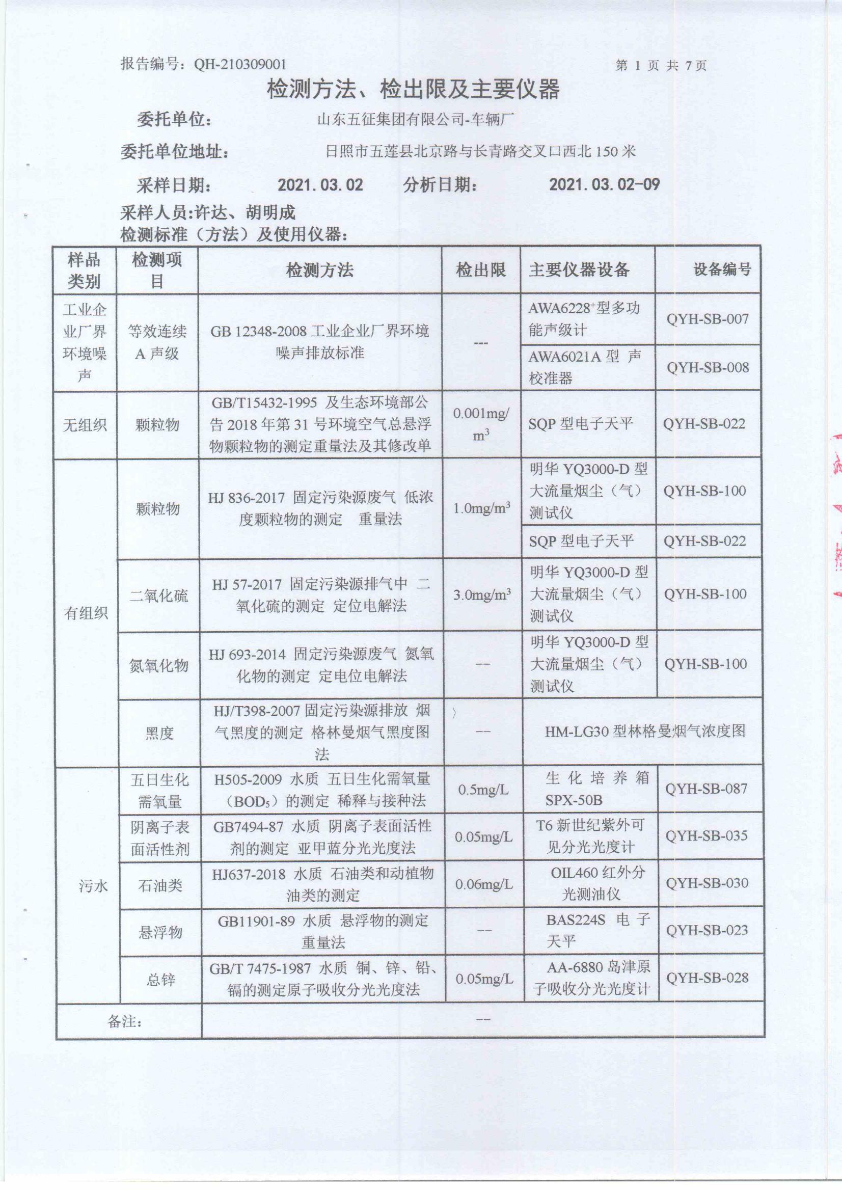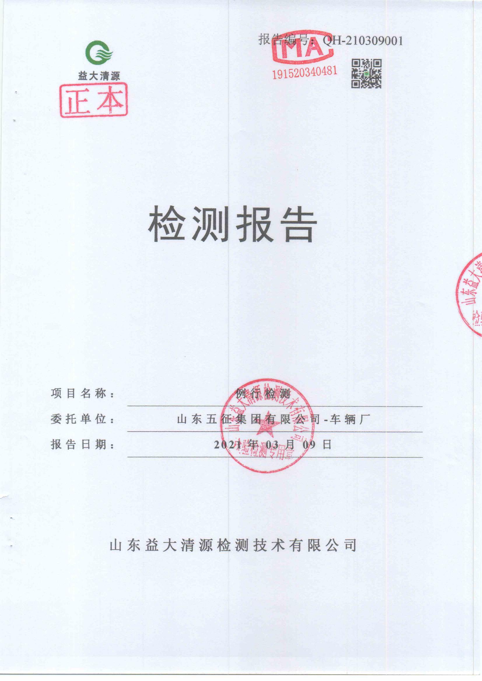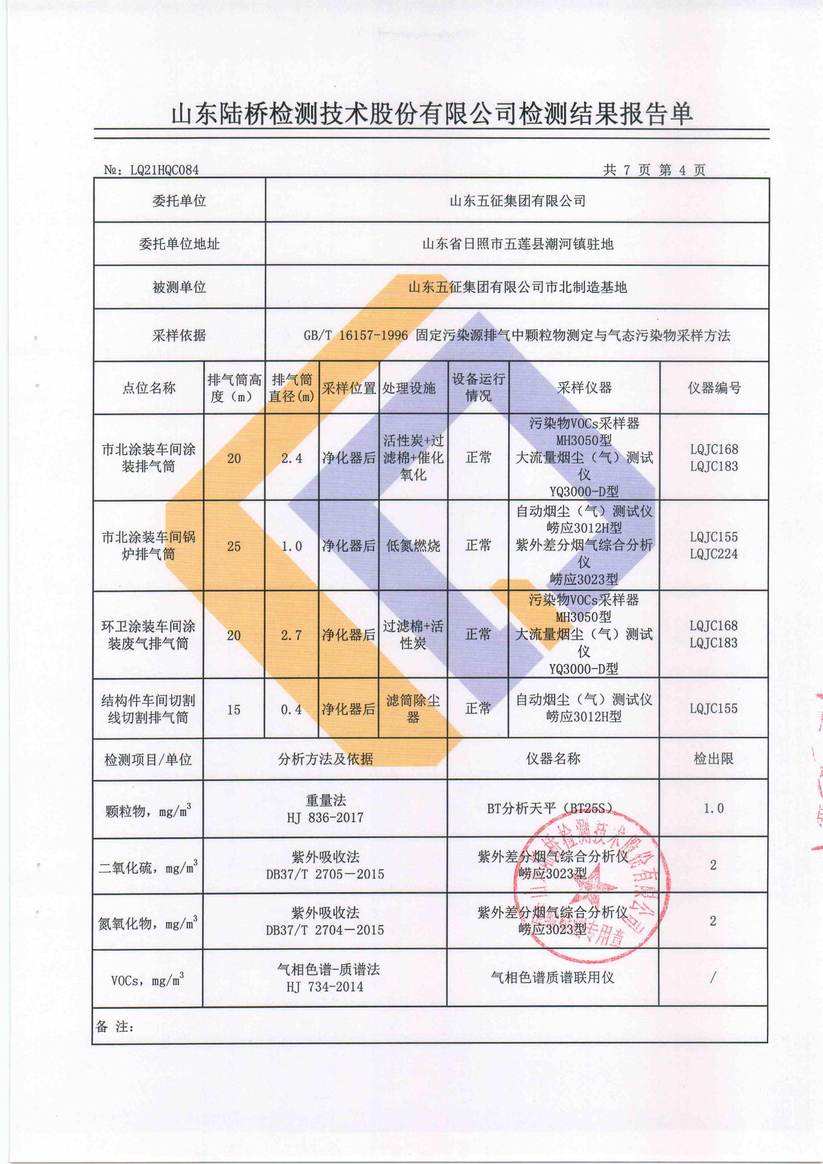山东五征集团有限公司2021年第一季度环保例行监测数据公示