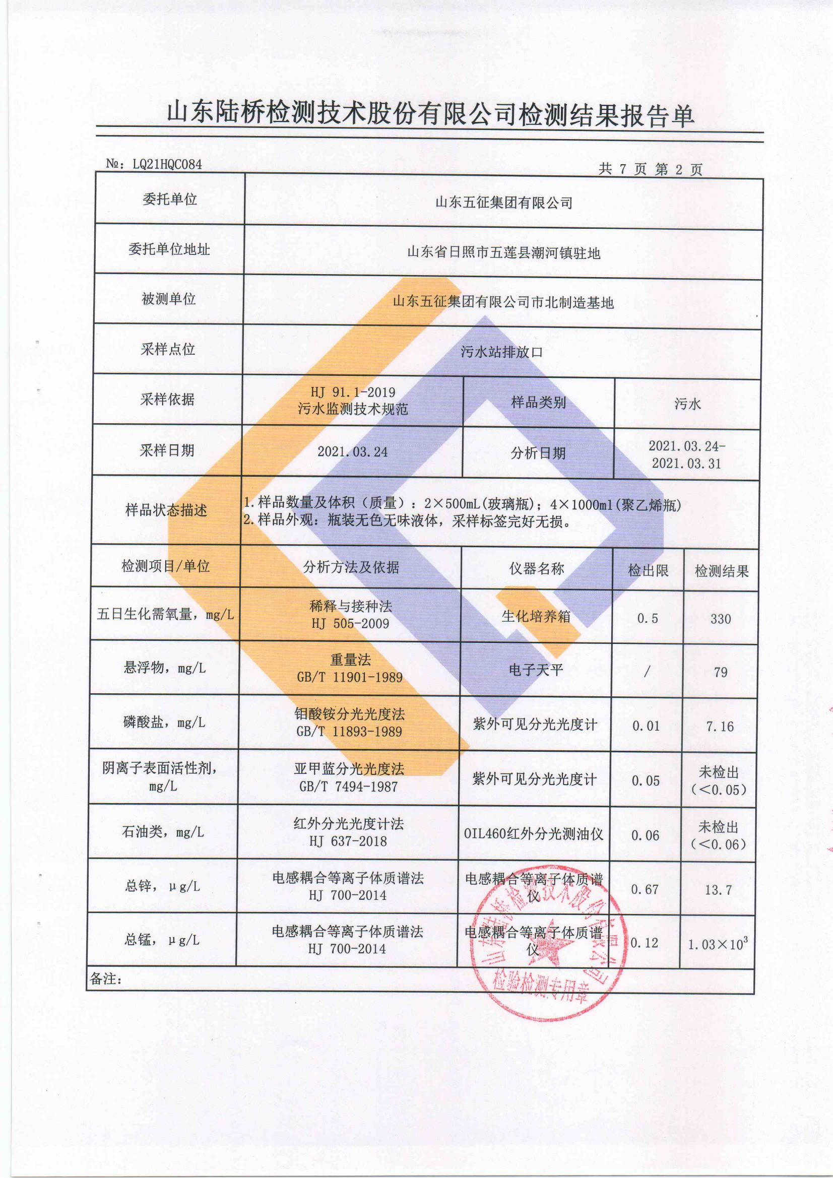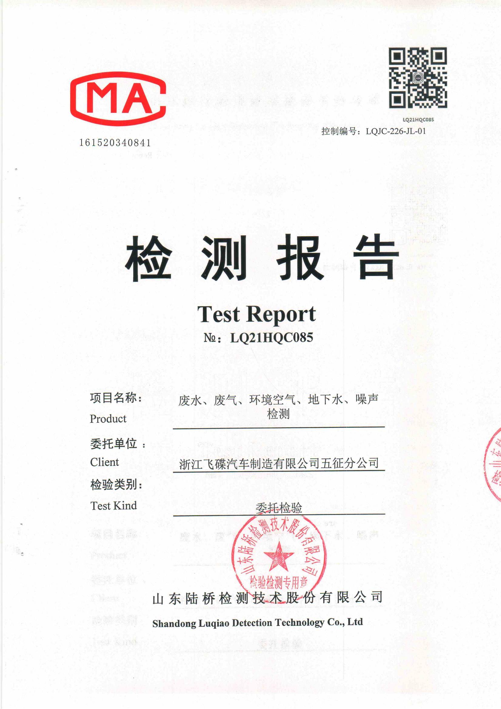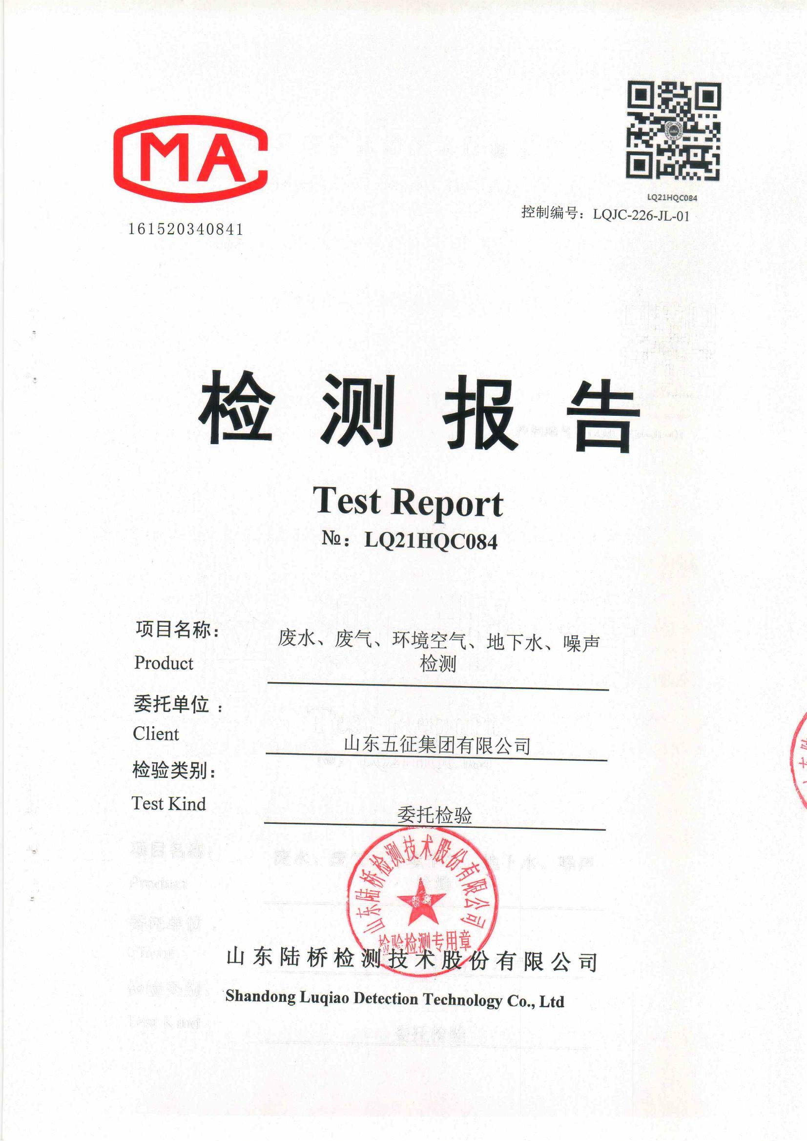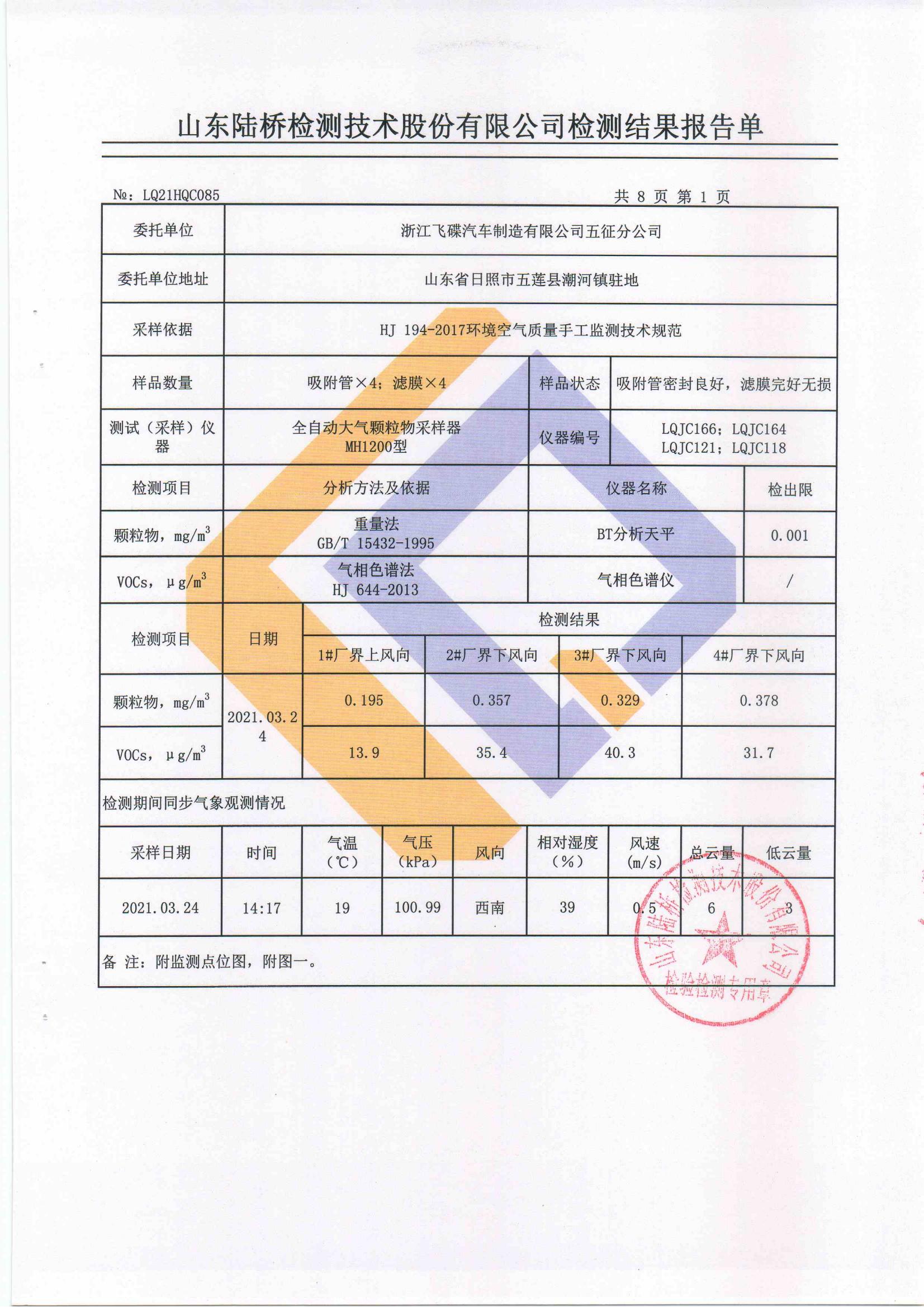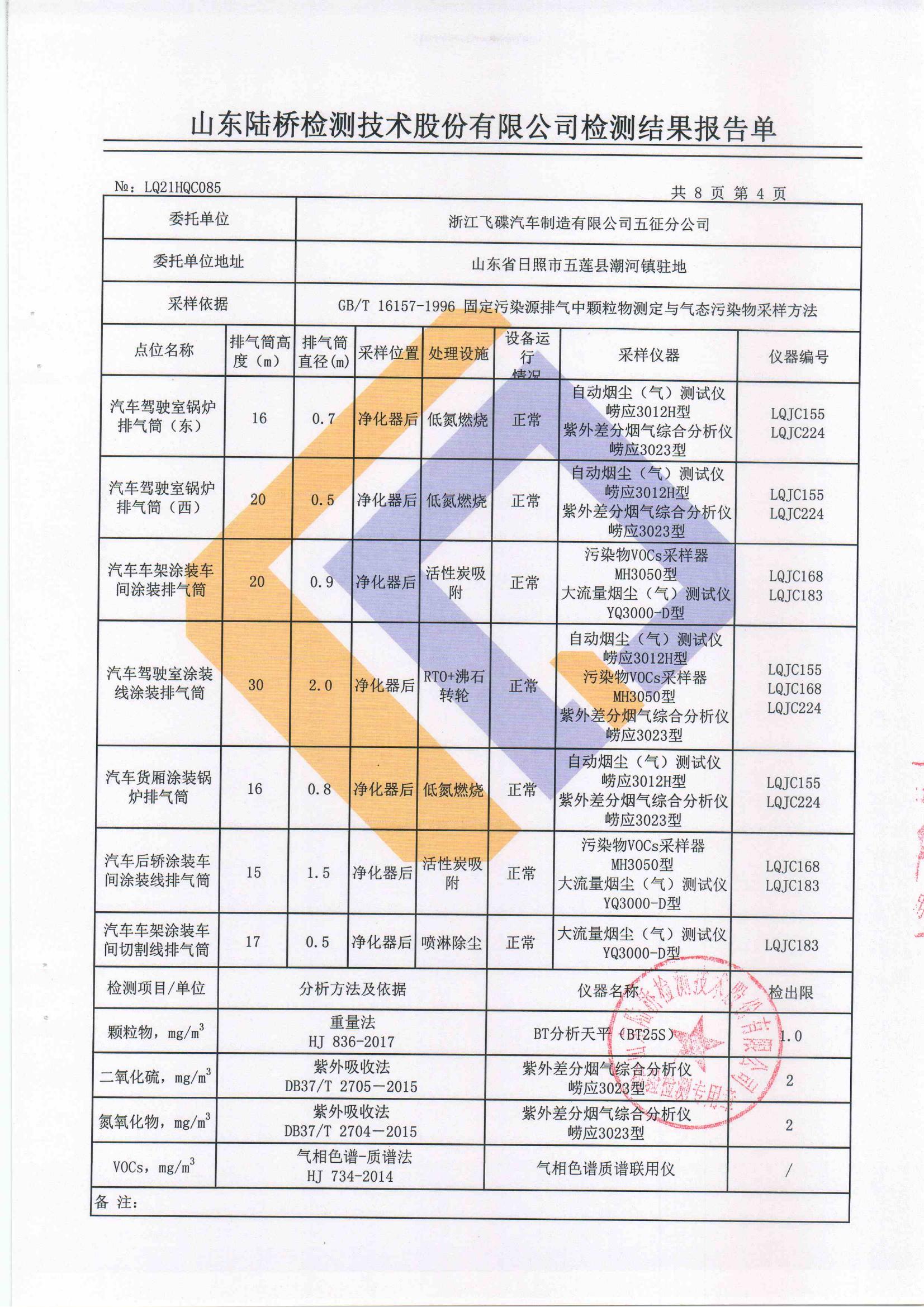 山东五征集团有限公司2021年第一季度环保例行监测数据公示