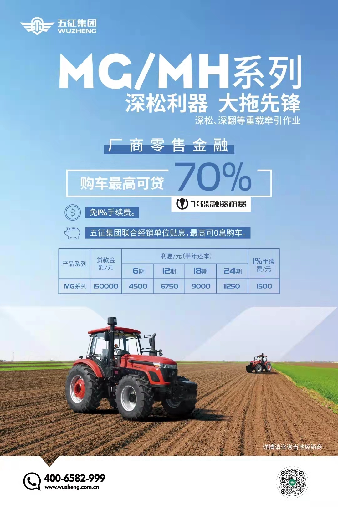 为惠及更多用户,五征集团推出的金融政策涵盖中拖、大拖全系列产品,以丰富的金融政策为大家提供低息等多重方案,不同产品采取不同的还款方式,还有不同的优惠福利,更有 6期、12期、18期、24期等多种期限可供选择,缓解用户资金难题,让用户无压力购车,助力用户实现致富梦。