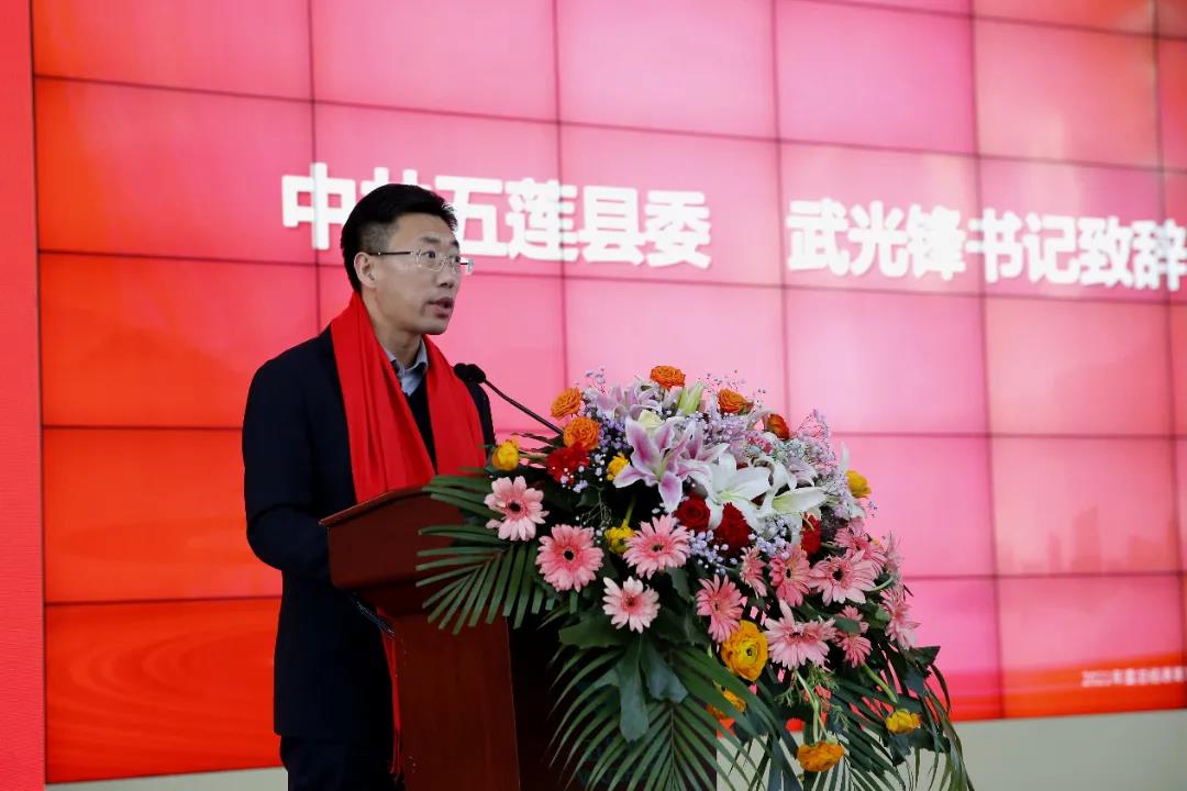 武光锋书记在讲话中表示,2021年恰逢五征60年华诞,五征人自力更生、艰苦奋斗,变革图强、创新争先。面对过去的一年前所未有的严峻考验,五征全体员工逆境奋起、攻坚克难,以技术引领促新产品开发,以创新赋能科技进步,以数字化提升管理水平,企业发展再上新台阶。2022年,是姜卫东董事长担任厂长的第30周年,武光锋书记向姜卫东董事长表示热烈祝贺,并对五征集团长期支持五莲发展做出的突出贡献,表示肯定!