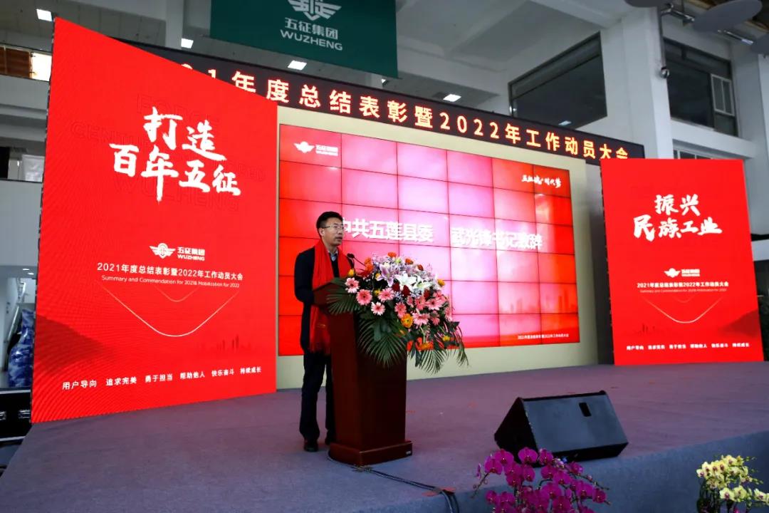 丑旧寅新宏图展,牛归虎跃春意浓。2022年1月26日,五征集团2021年度总结表彰暨2022年工作动员大会在五征会展中心召开。中共五莲县委书记武光锋、县长孙丽、县人大常委会主任李登来、县政协主席高子孟、市北经济开发区党工委书记陈常永、县工信局局长安丰霞等领导出席会议。武光锋书记致辞,姜卫东董事长做重要讲话,姜文娟总经理作2022年工作动员报告。