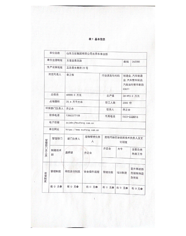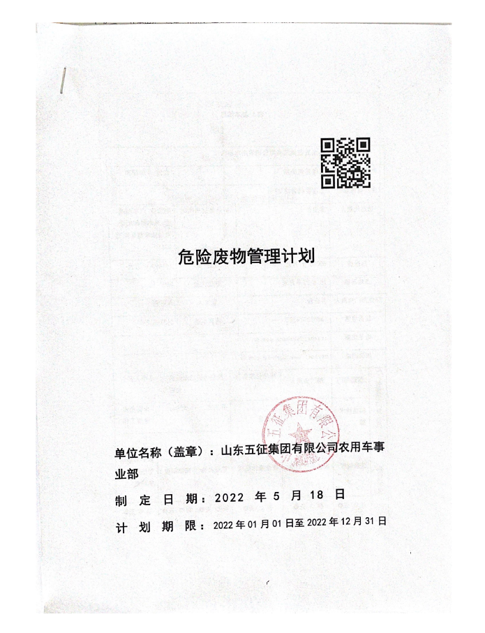 2022年五征集团农用车危险废物管理计划信息公开