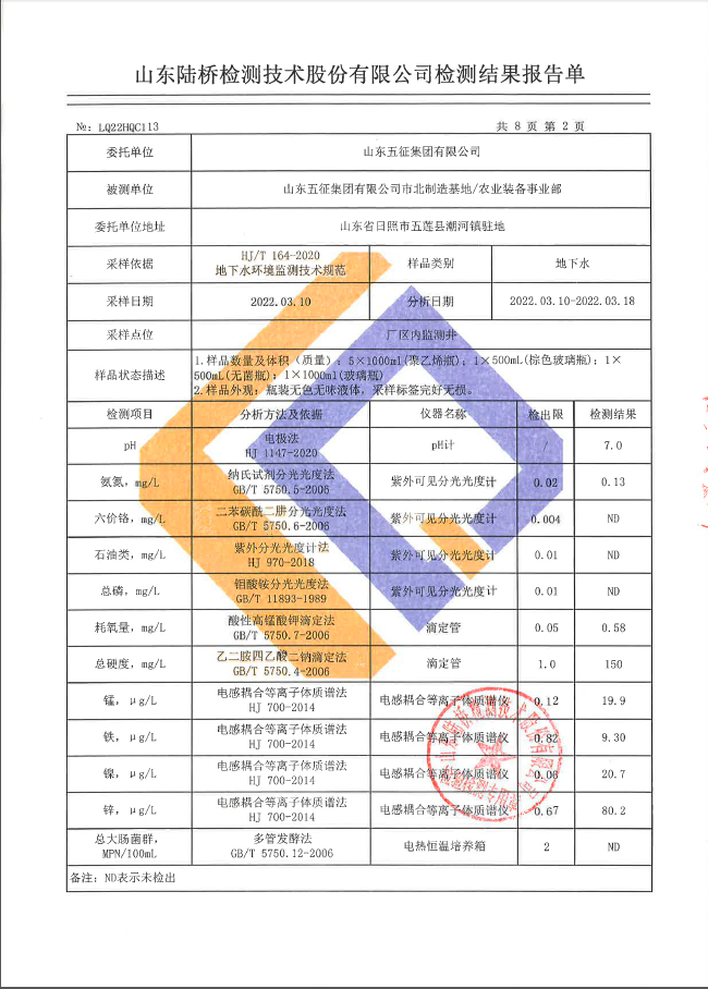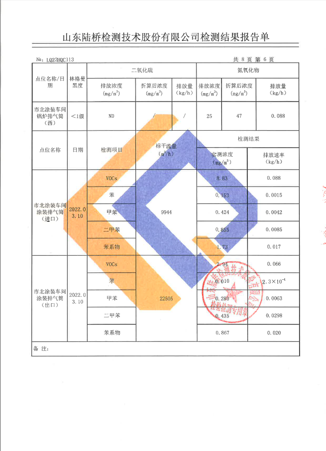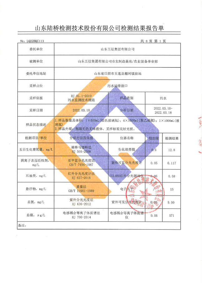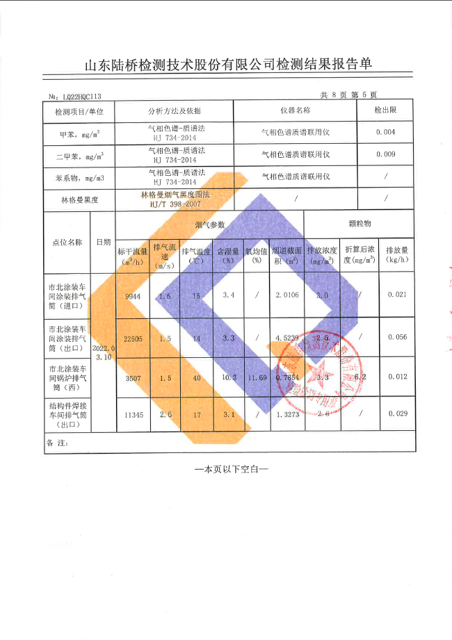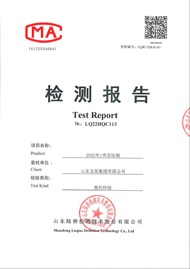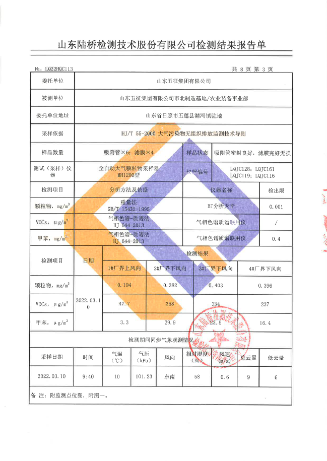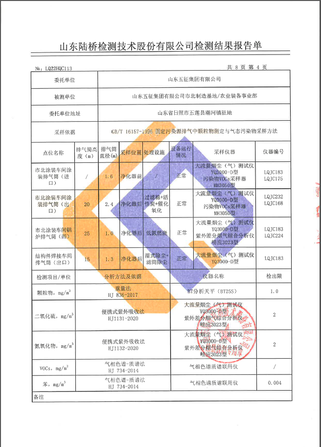 2022年第一季度五征农业装备环境检测信息公开