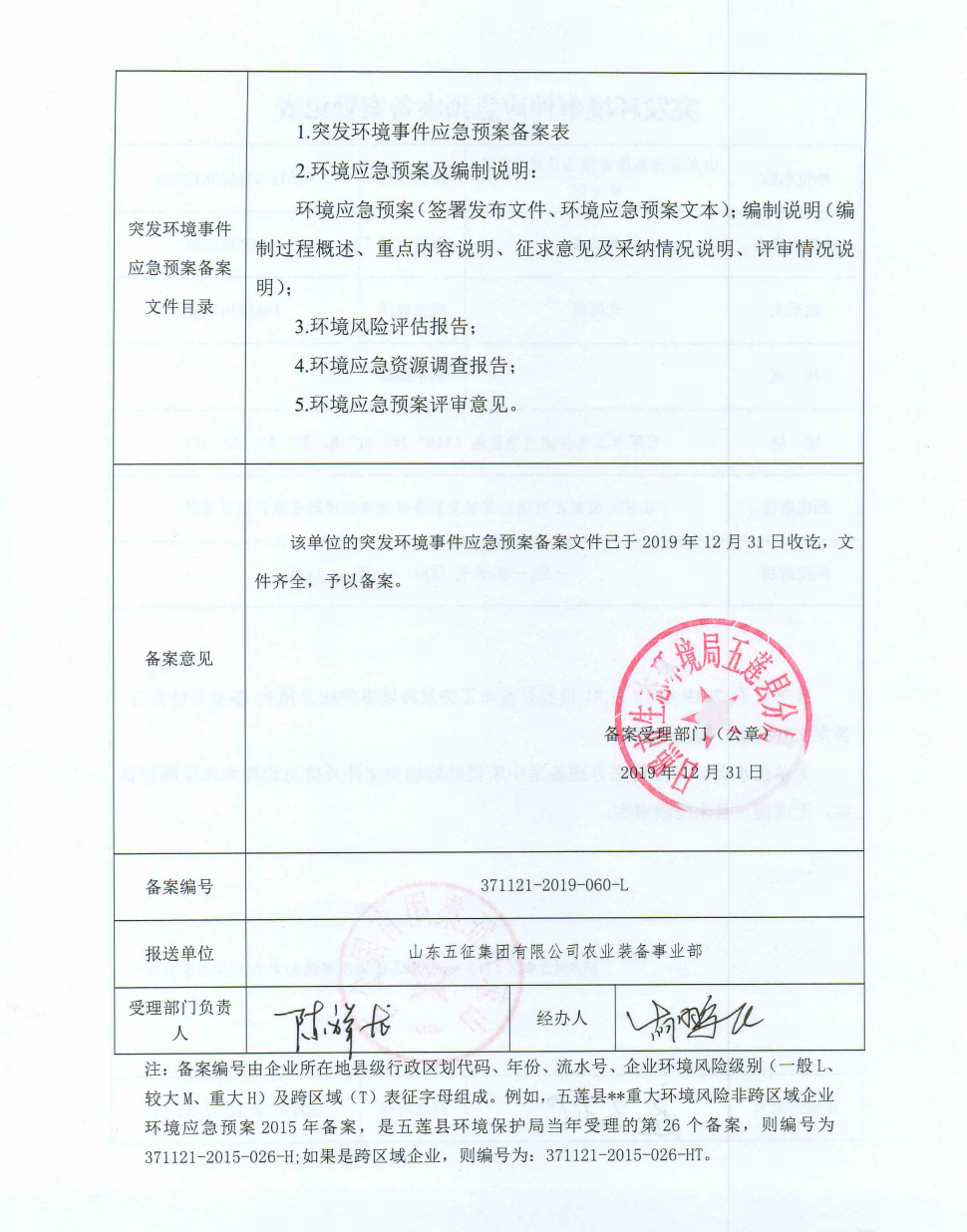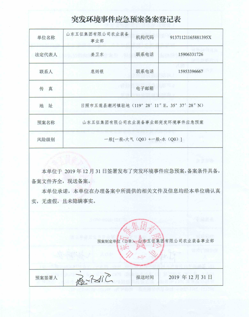 2020年五征农业装备突发环境事故应急预案