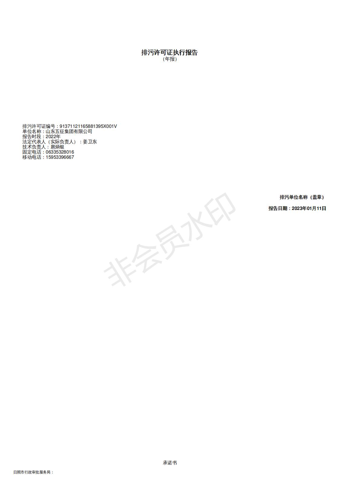 山东五征集团有限公司2022年排污许可执行报告信息公开