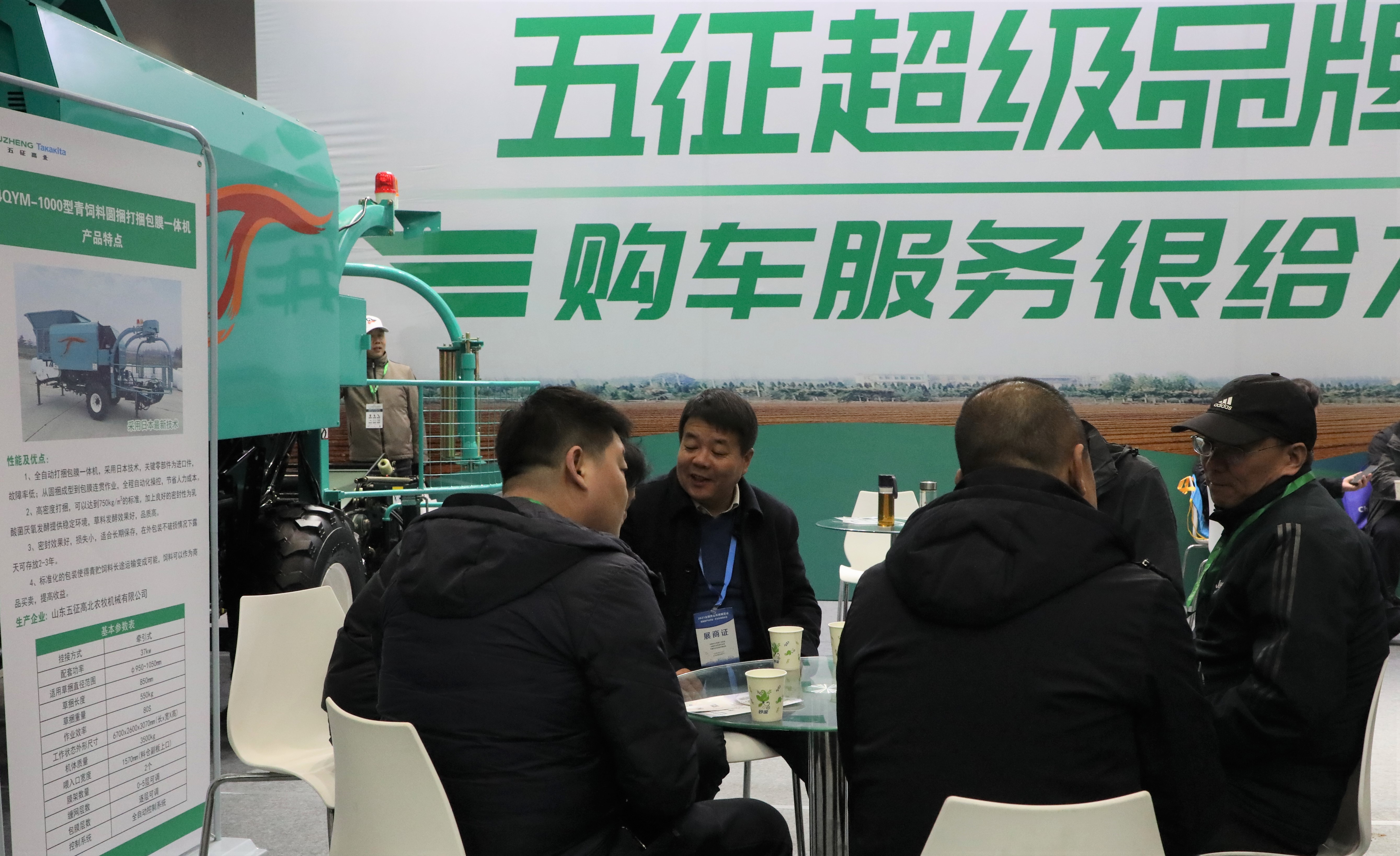 在展区,五征还展出了多款自主研发的行业标杆产品。4QZ-M30自走式青饲料收获打捆机籽粒破碎率98%以上,每小时最大作业效率30吨;4QYM-1000型青饲料圆捆打捆包膜一体机从圆捆成型到包膜连贯作业,全程自动化操作,作业效率30-35捆/小时;五征F30电动车是高端重载货运车型,主要应用于城乡中短途物流运输;五征EH2604电驱CVT拖拉机填补了电驱CVT拖拉机的市场空白,为我国拖拉机技术升级换代掀开了崭新的一页。