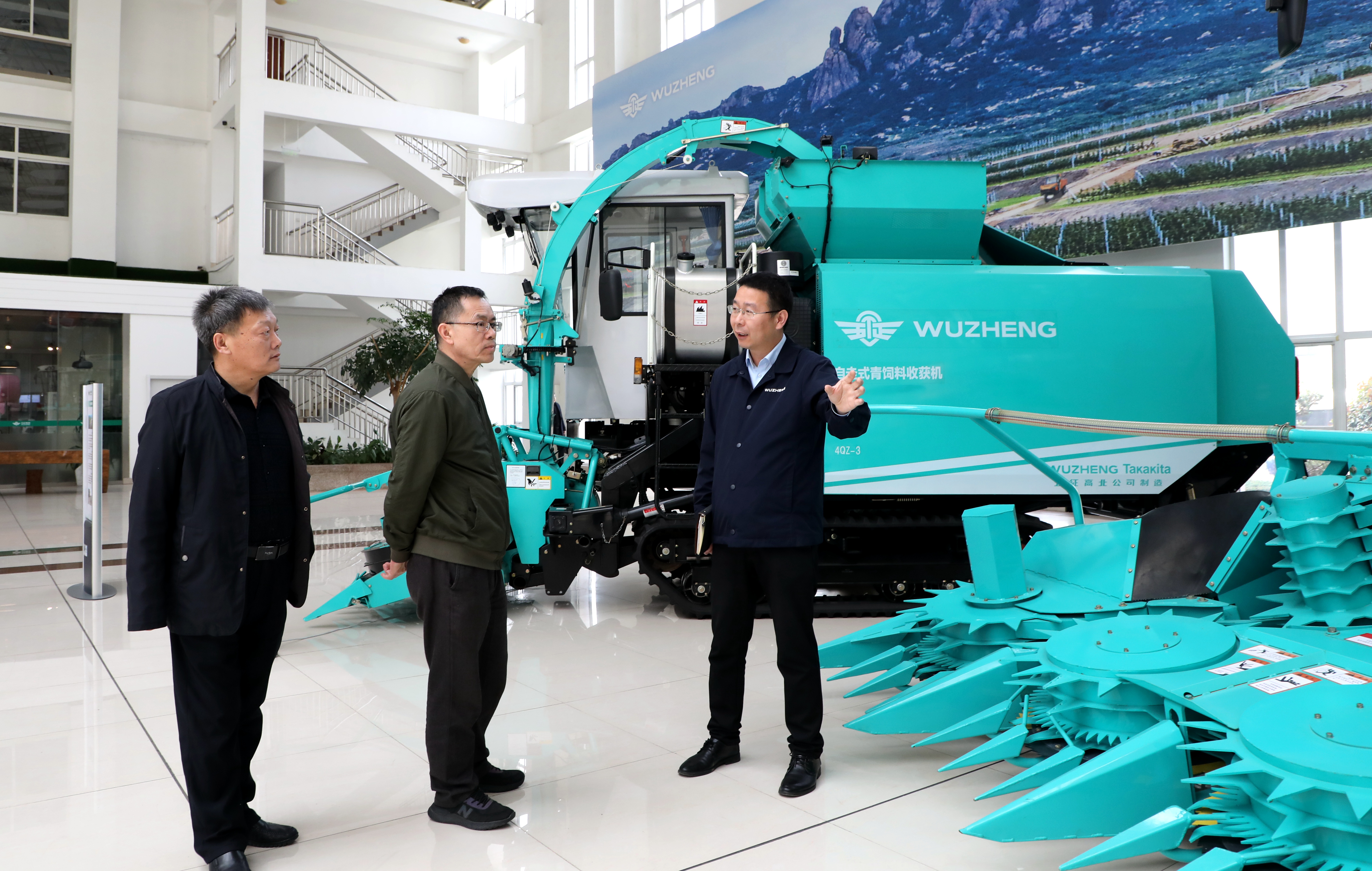 在产品展厅,姜卫东详细介绍了飞碟Q2、飞碟HW5、3MX迈昂电动版、五征大马力拖拉机、五征青贮机械等高端产品,其中重点汇报了五征混合动力CVT拖拉机和五征青贮机械。五征混合动力CVT拖拉机属行业首创产品,填补了电驱CVT拖拉机的市场空白,它采用混合动力CVT传动系统,全程无级变速,搭载智能驾驶系统,运用5G通信技术、田间地头管理技术等实现在田间耕、种、管、收等环节的全程无人作业。五征青贮机械可实现收获、切碎、打捆、封膜一站式完成,可替代进口产品,全力助推饲料畜牧业发展,打造国内第一品牌,成为打通“粮改饲”最后一公里的利器。