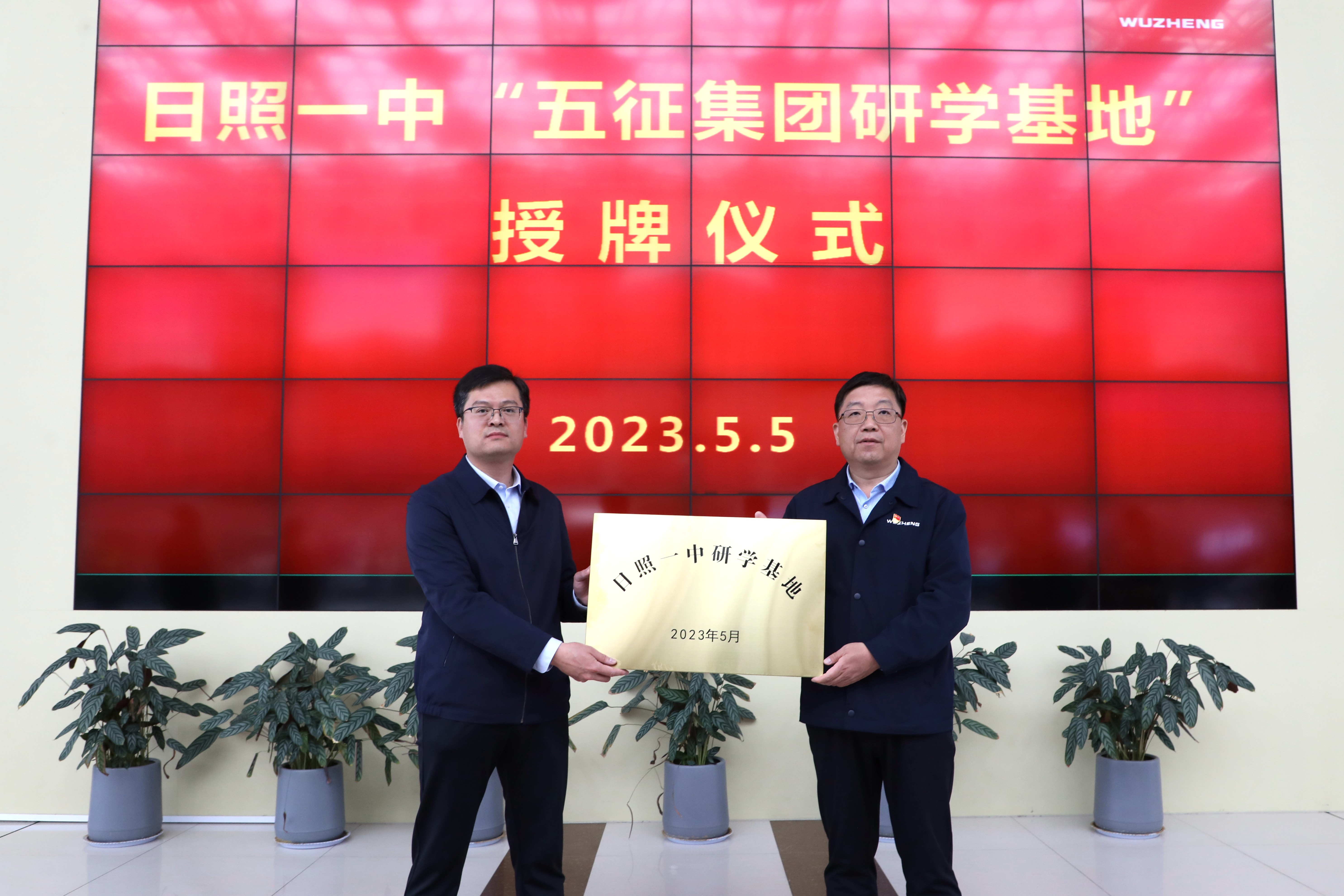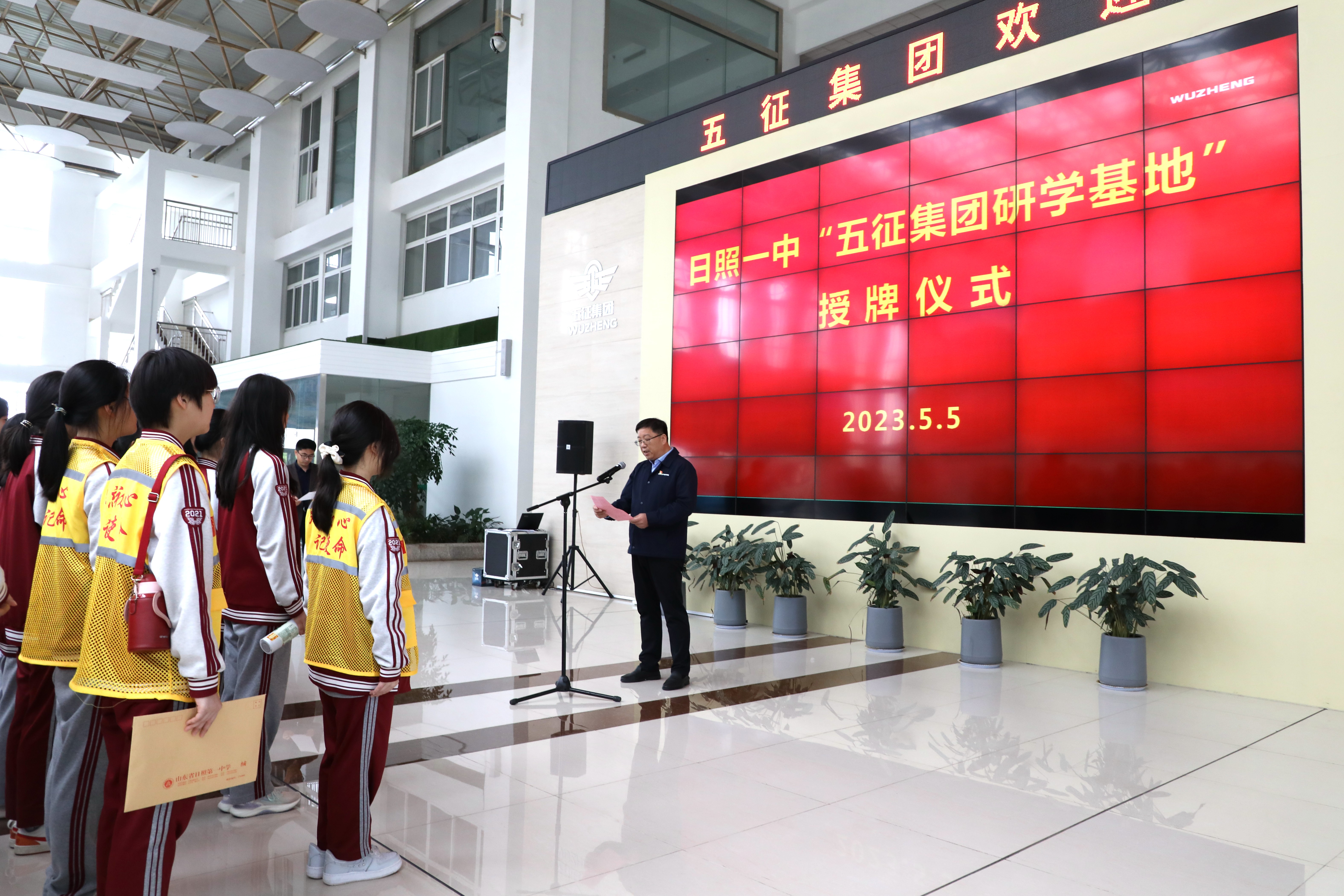 5月5日,日照一中“五征集团研学基地”授牌仪式在五征会展中心隆重举行。仪式上,日照一中党委委员、纪委书记王志伟代表日照一中向五征集团授“日照一中研学基地”牌匾,并赠送“心系教育彰显担当 助力研学共促成长”锦旗。