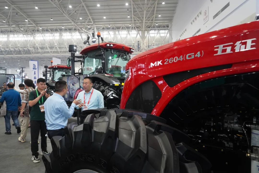 展会上,五征“征锋”产品开发负责人,详细解读了产品的技术优势。其中,征锋MK系列拖拉机是五征为国内大型农场及替代进口需要而开发的具有完全自主知识产权的新一代大马力拖拉机,特别适用于东北、新疆大型农场的耕、耙、复式作业等重负荷作业,还可实现与其它农机的联合精准作业;征锋MF系列多用途轮式拖拉机,适用于超低速打包、旋耕、深松、播种,兼顾开沟、中轻载犁耕等作业场景,具有性能优越、结构紧凑、操纵方便、舒适、低震动、低耗油、整机重量大、牵引力大等特点,是多种作业的首选机型。全新亮相的多款智创农机新品,让广大国内外客商及农机用户近距离感受五征拖拉机的优越性能。