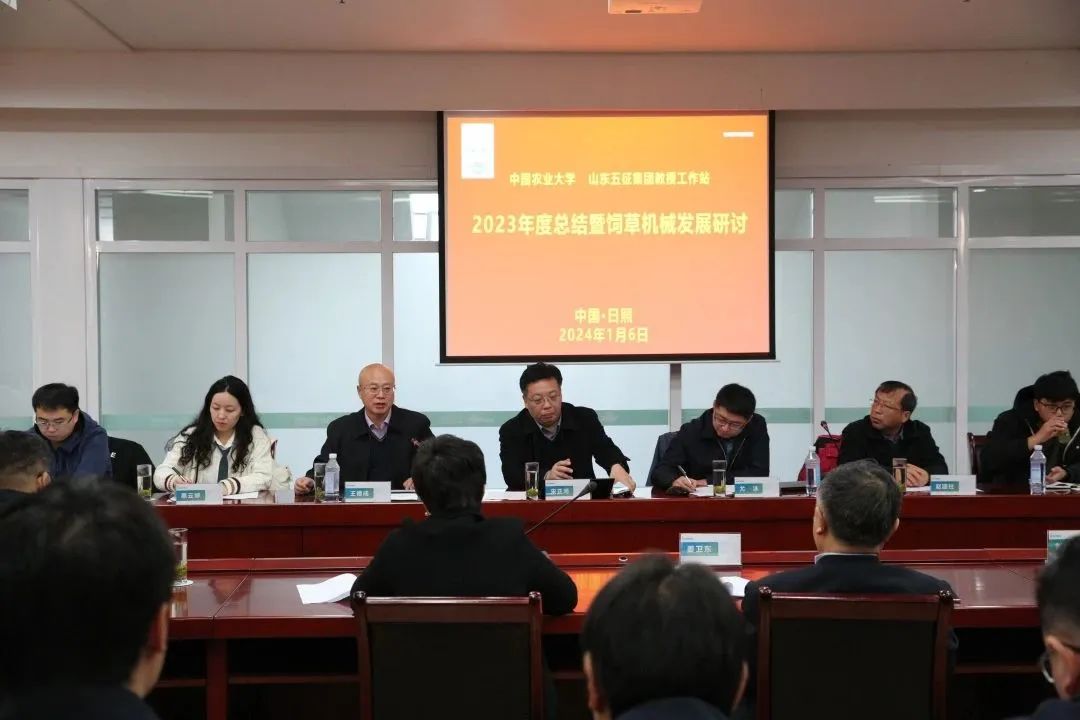 1月6号,教授工作站2023年度总结暨饲草料机械发展研讨会在五征总部举行。中国农业大学工学院院长宋正河,工学院党委书记、教授工作站核心成员、副教授尤泳,教授工作站负责人、工学院教授王德成及教授工作站专家、领导、部分讲师、博士研究生齐聚五征,总结2023年度工作成果,探讨2024年度饲草料机械发展规划。五征集团董事长姜卫东、总经理姜文娟参会。