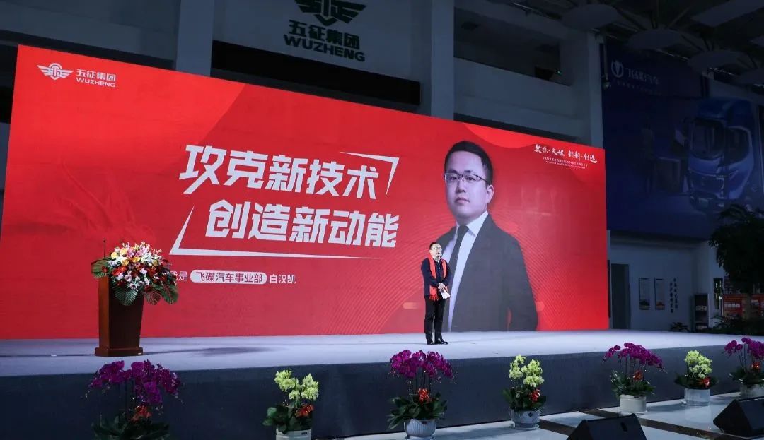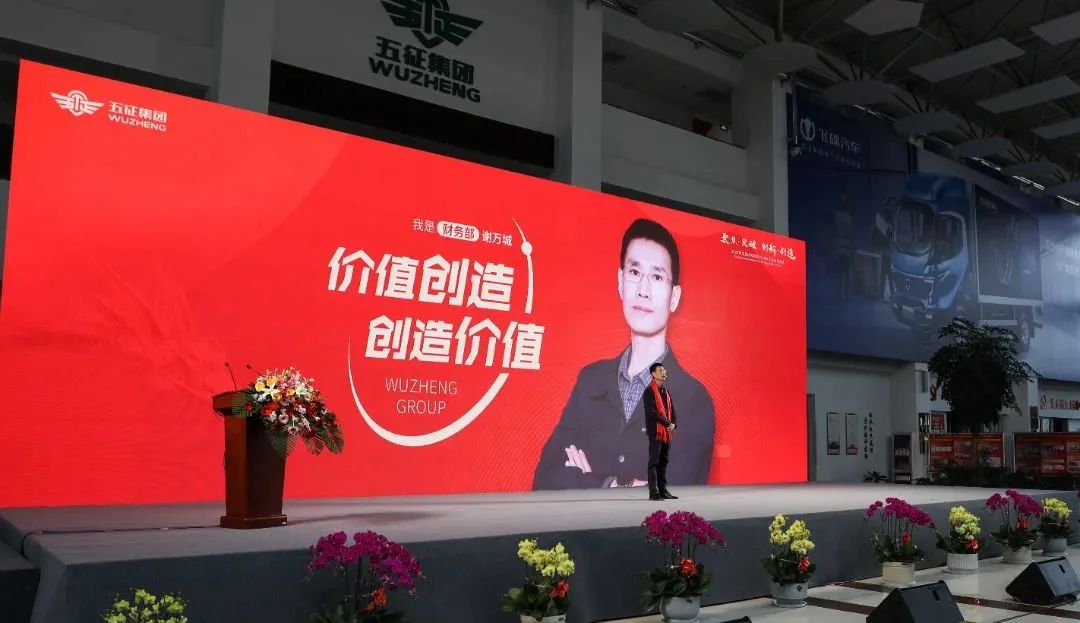 五征农用车员工代表王爱军现场分享了在五征工作的点点滴滴,生动形象的展现了五征农用车发展荣光。