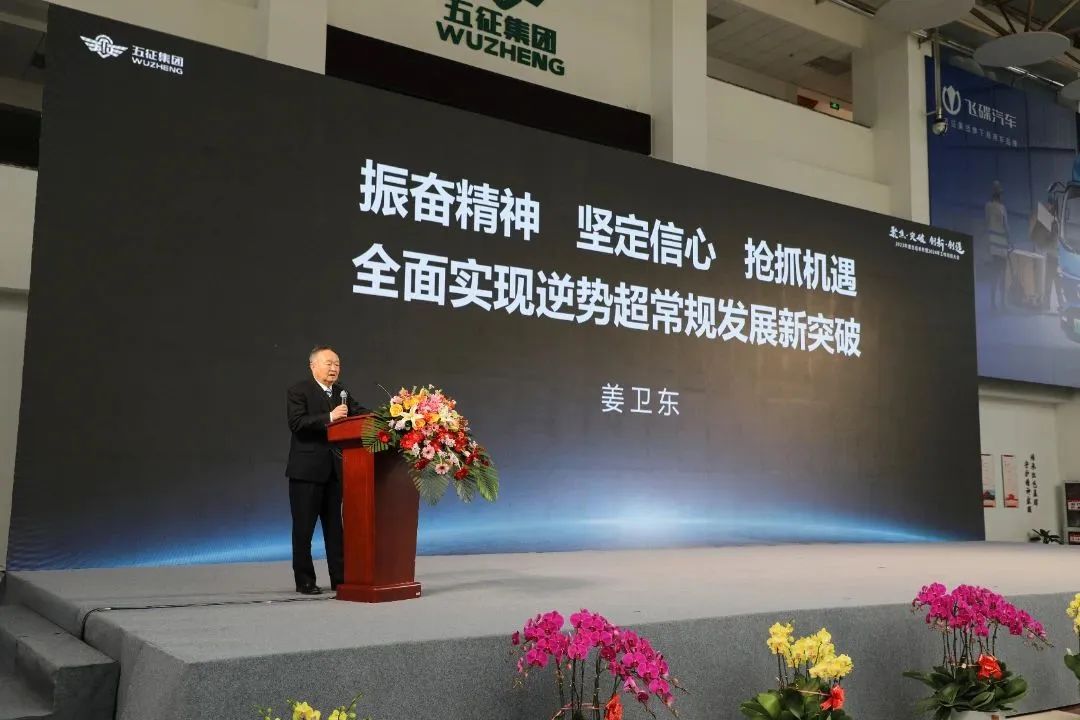 姜卫东作主题为《振奋精神 坚定信心 抢抓机遇 全面实现逆势超常规发展新突破》重要讲话。他表示,2023年,五征集团成绩的取得是五征全体干部员工同心同德、共同奋斗的结果,是各级党委、政府及社会各界一如既往关心和支持的结果。