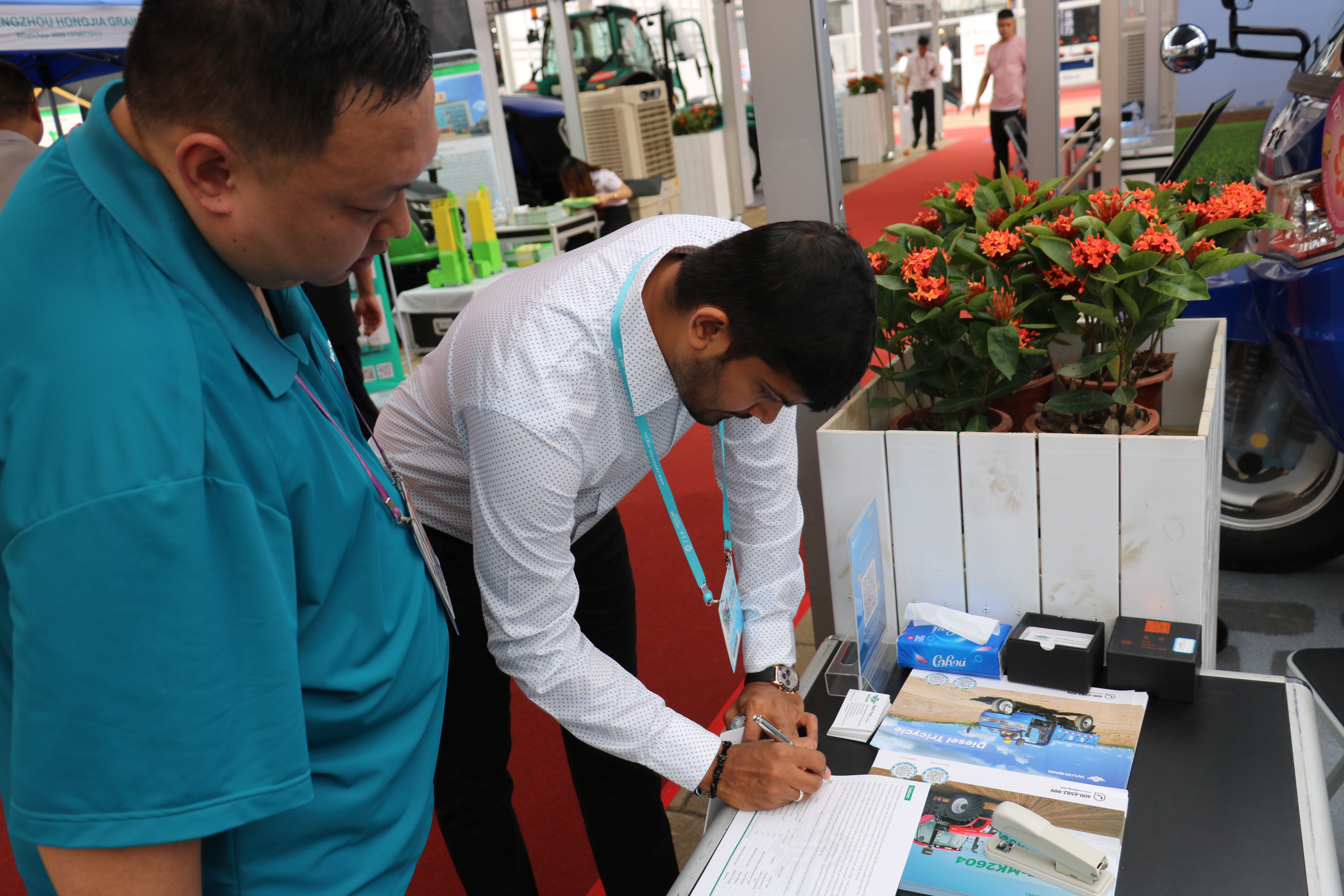 据了解,此次五征展区参展客商、订单签订数量均创历史新高。自盛会开幕以来,五征接待了来自俄罗斯、比利时、伊朗、智利、科特迪瓦、突尼斯、秘鲁、塞内加尔、阿根廷等50余个国家的客商200余次,其中与对五征产品抱有极大兴趣的客户绕车详谈70余次,收集销售线索119余条,有20余家客户表示预约参观五征厂区。展会上,五征与马来西亚客商现场签订了大批量采购拖拉机的订单合同,为五征的全球化布局再添新助力。