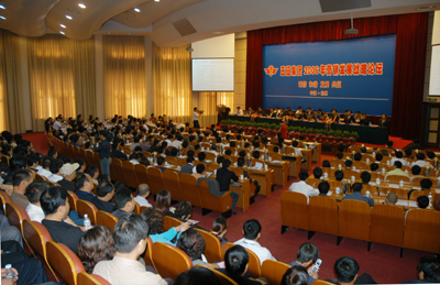 公司执行副总经理胡乃芹宣读了《山东五征集团关于表彰奖励2005年度优秀经销商的决定》;对荣获销量金奖、增幅金奖、服务金奖30家经销单位进行了表彰奖励。公司副总经理葛友谊就2005年的营销工作做了介绍,并就公司今后营销政策和措施讲了意见。辽宁省新民市农业机械有限公司张海波、陕西咸阳鸿天农机公司杨广仁代表经销商在论坛上发了言。
