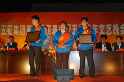 5月4日,五征集团劳模表彰暨五四青年文艺晚会在公司总部广场隆重举行。县领导曹春霞、秦泗顺、胡靖、王建国及经贸局、县工会等有关部门的负责人出席大会,并与2000名五征员工一起观看了精彩的演出。晚会由党委副书记、工会主席孙永存主持。陈祥义总经理宣读了《关于表彰劳动模范的决定》,毕善锋等20名来自生产一线、销售一线和科技一线员工被授予劳动模范称号,以表彰他们在不同的岗位所作出的突出贡献。姜卫东董事长在会上作了重要讲话。