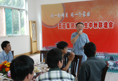 10月6日上午,五征集团在军营山庄举行“同一轮明月 同一个家园”中秋节联谊会。集团公司领导、技术部门的负责同志和由于离家较远而没有回家过节的部分新入厂大学生一起,欢歌笑语,喜迎中秋,共庆佳节。