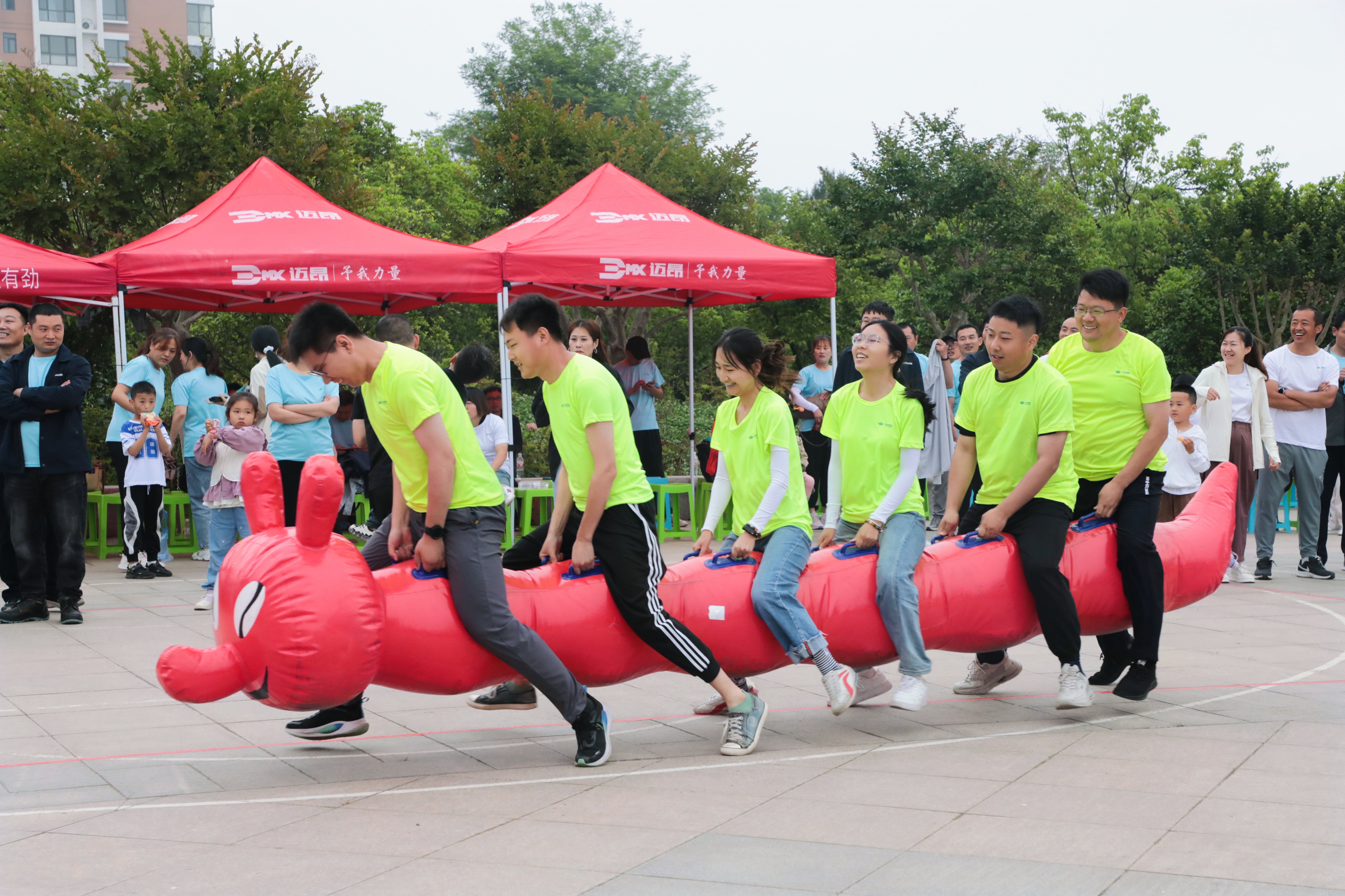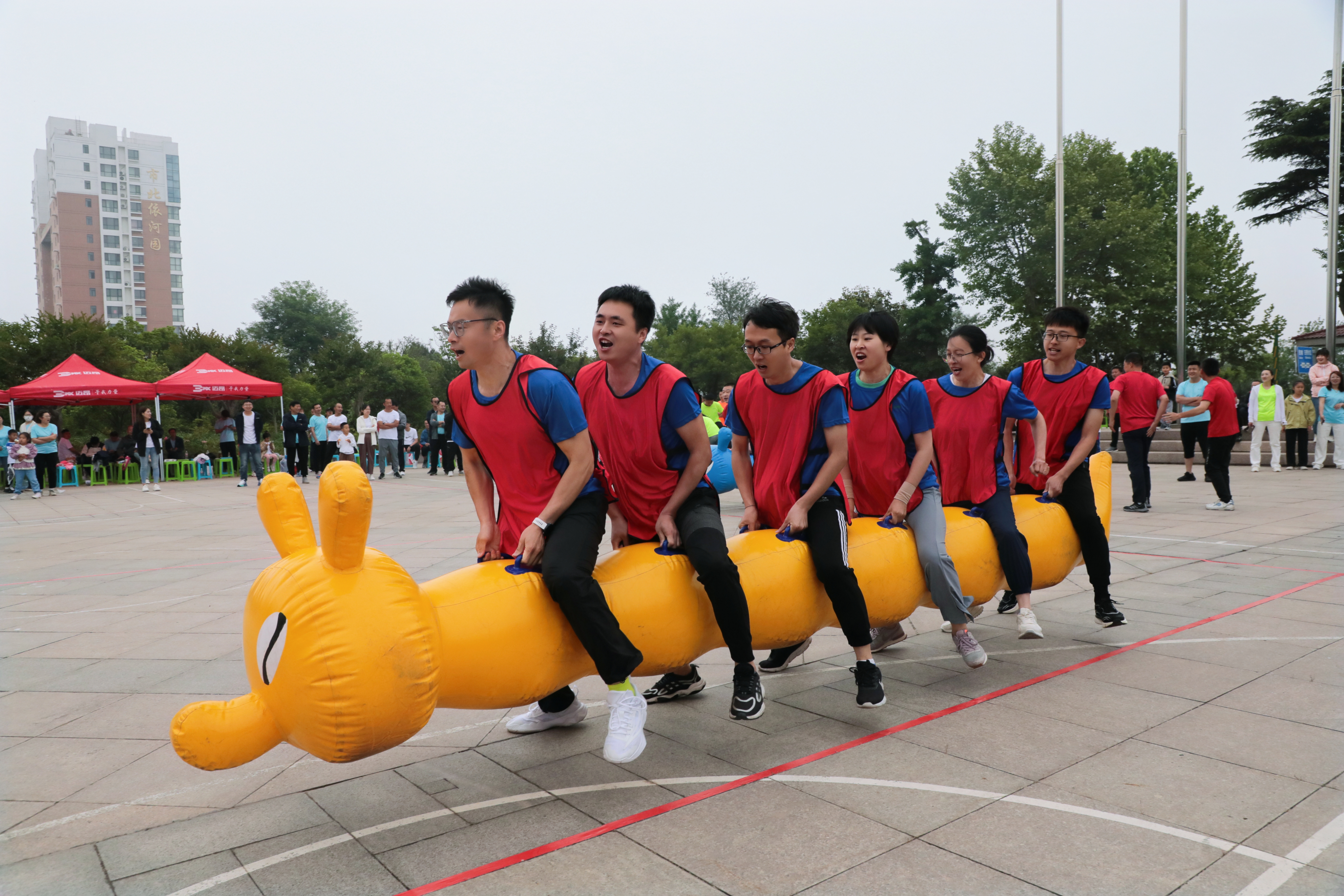 本届运动会比往届项目更加丰富,环节更加精彩,既有毛虫竞速、拔河角力、大河之舞、螃蟹背瓜、轮胎接力、动力澎湃、快速三子棋等团队项目,也有跳绳炫彩、毽子飞舞等个人项目。