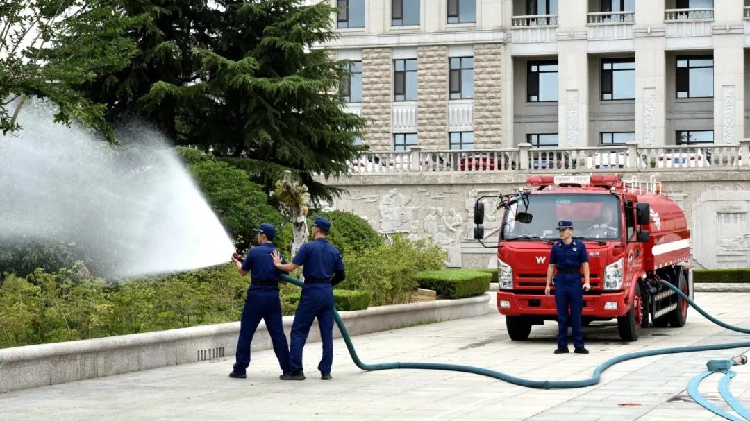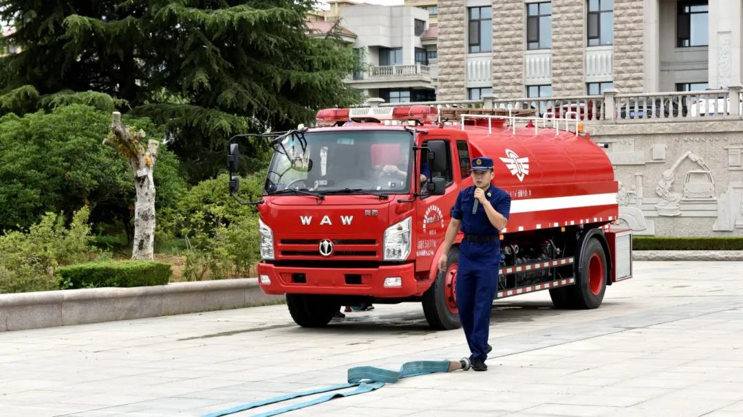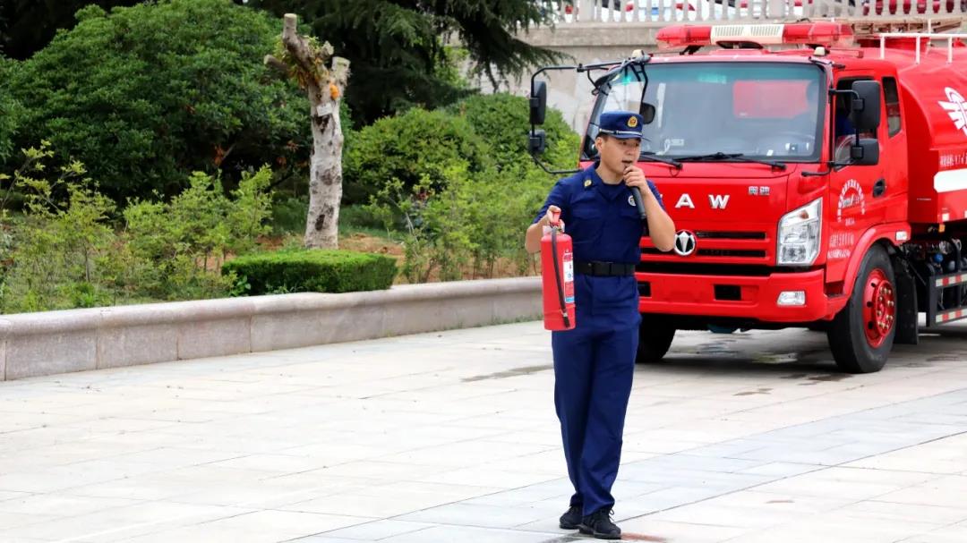 在消防器材使用培训中,消防官兵在安全区域详细地讲解并示范了灭火器的“提拔握压”操作流程,同时还讲解了消防水带的连接方式,并向参与演练的员工展示了如何从消防车水箱中抽取水源,以及如何调整水源大小以进行灭火。