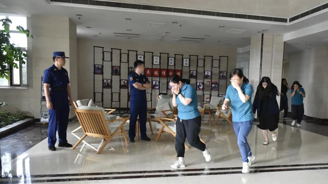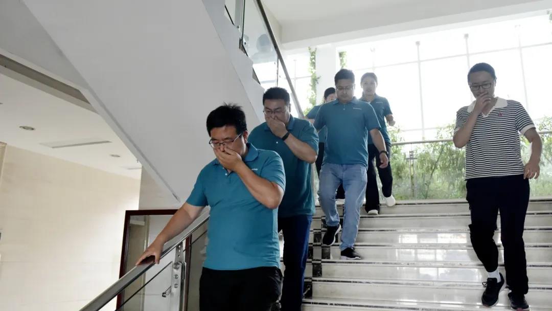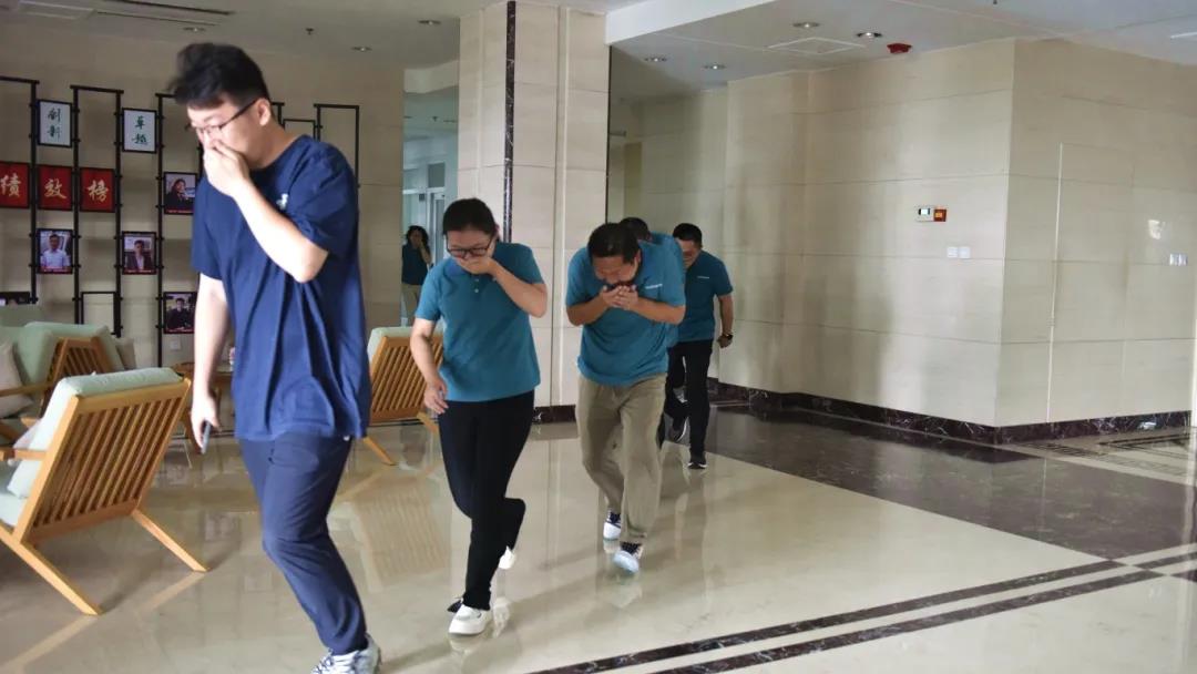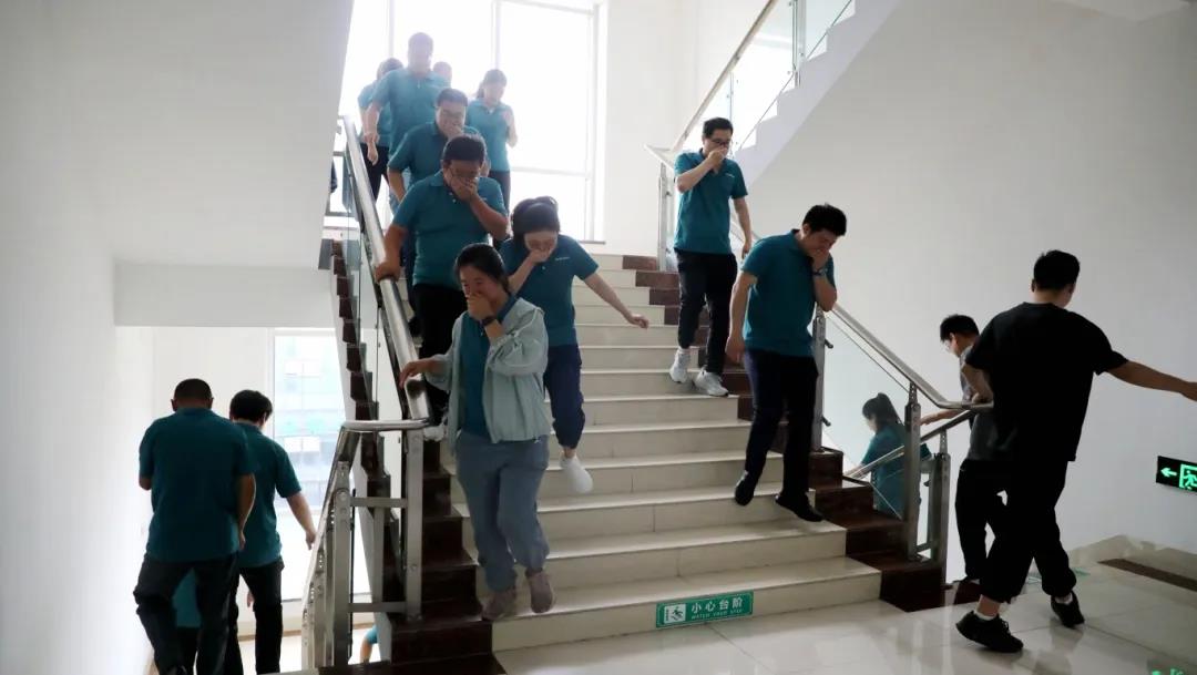 上午9点,消防官兵及消防车就位,随着逃生警报响起,应急疏散演练活动正式开始。全体员工按照演练方案各就各位,严阵以待。各楼层指挥提前到班就岗,沉着冷静地指挥员工用手、袖口等捂住口鼻,有序撤离所在楼层办公室,沿指定路线低头弯腰快速下楼,有序到达安全空旷区域。这种贴近真实的演练,让员工在紧张的氛围中,切实掌握了逃生的技能和要点。