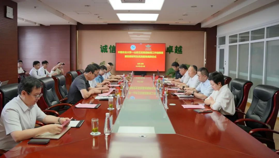 仪式现场,姜文娟总经理与宋正河院长共同携手为“中国农业大学校级研究生实践基地”揭牌,并与王德成教授续签教授工作站合作协议。