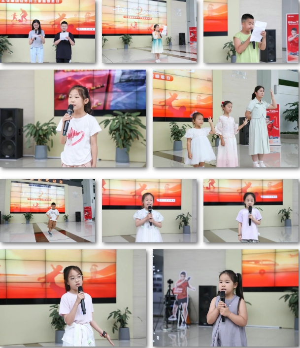 舞台成为孩子们表达爱的天地。马克忠儿女演唱《感恩的心》、厉冰女儿朗诵《五星红旗》、解翔女儿说唱《苟活之重生》、何召鹏女儿朗诵《锦绣》、刘志龙孩子们的手势舞《爸爸,您辛苦了》,精彩节目轮番上演,很多未报名的孩子也踊跃上台表演节目。