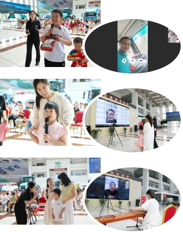活动高潮被跨越时空的“亲情连线”点燃。飞碟汽车事业部研发中心的马洪格工程师,正在北京通州试验场进行汽车试验,对孩子进行了问候,孩子也展示了手绘汽车和“最佳爸爸”奖状;农用车事业部营销公司的孙金友经理,远在青海省西宁市,其妻子说“你在千里之外放心,家里放心,有我在呢,我会把老人和孩子照顾好的”,女儿为他演唱了《陪我过个冬》;国际合作部的孙丙阁经理,远在乌干达,凌晨4点就早早起来,欣赏了女儿古筝独奏《定风波》。三次视频通话,三次远方问候,亲情点亮了同一份坚守的力量。