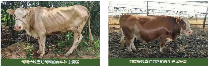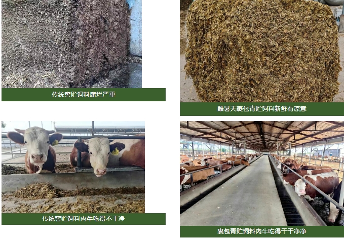优质饲料是肉牛健康成长的核心要素,对牛肉品质提升和企业效益增加至关重要。饲喂裹包青贮饲料呈现出鲜明的特点: