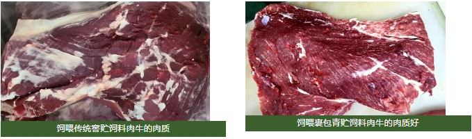 裹包青贮饲料能有效提高肉牛的出肉率。万邦牧业通过对比发现,饲喂裹包青贮饲料的肉牛,屠宰后出肉率较饲喂传统窖贮青贮饲料提高了近1%,收益增加450元,同时,肉质鲜嫩、劲道。这一优势不仅为养殖户带来了更高的经济收益,也更好地满足了消费者对高品质牛肉的需求。
