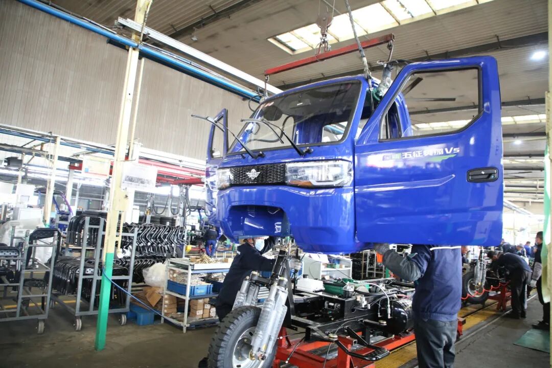 早上7点,农用车发货场上,一辆辆满载三轮车的运输车驶向全国市场及海外港口。总装生产线已全部启动,日产量达400余台,尚欠国内外市场订单7900余台。
